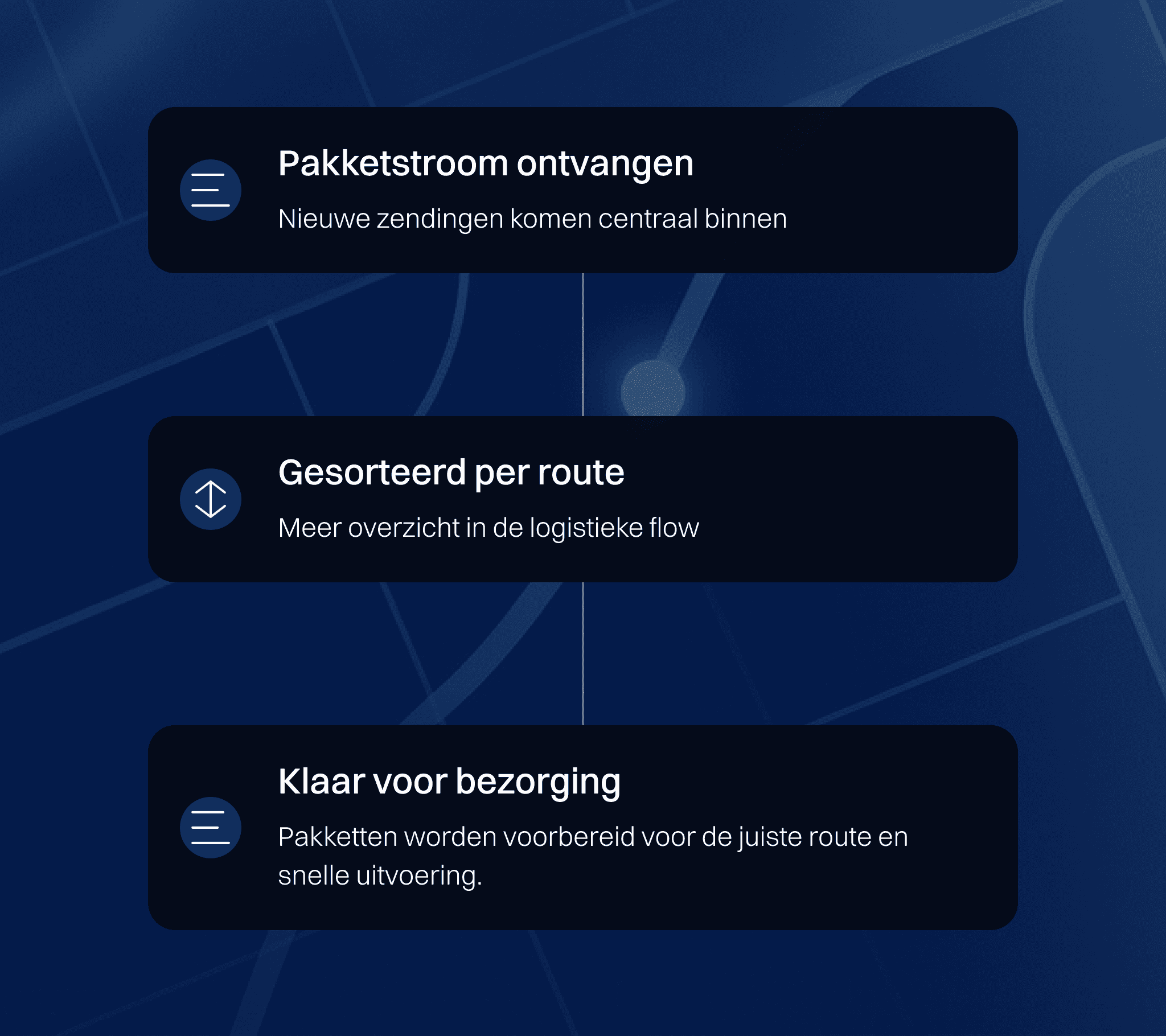 HLS helpt bij ontvangst, sortering en routevoorbereiding van inkomende zendingen, zodat pakketstromen sneller en overzichtelijk klaarstaan voor bezorging.